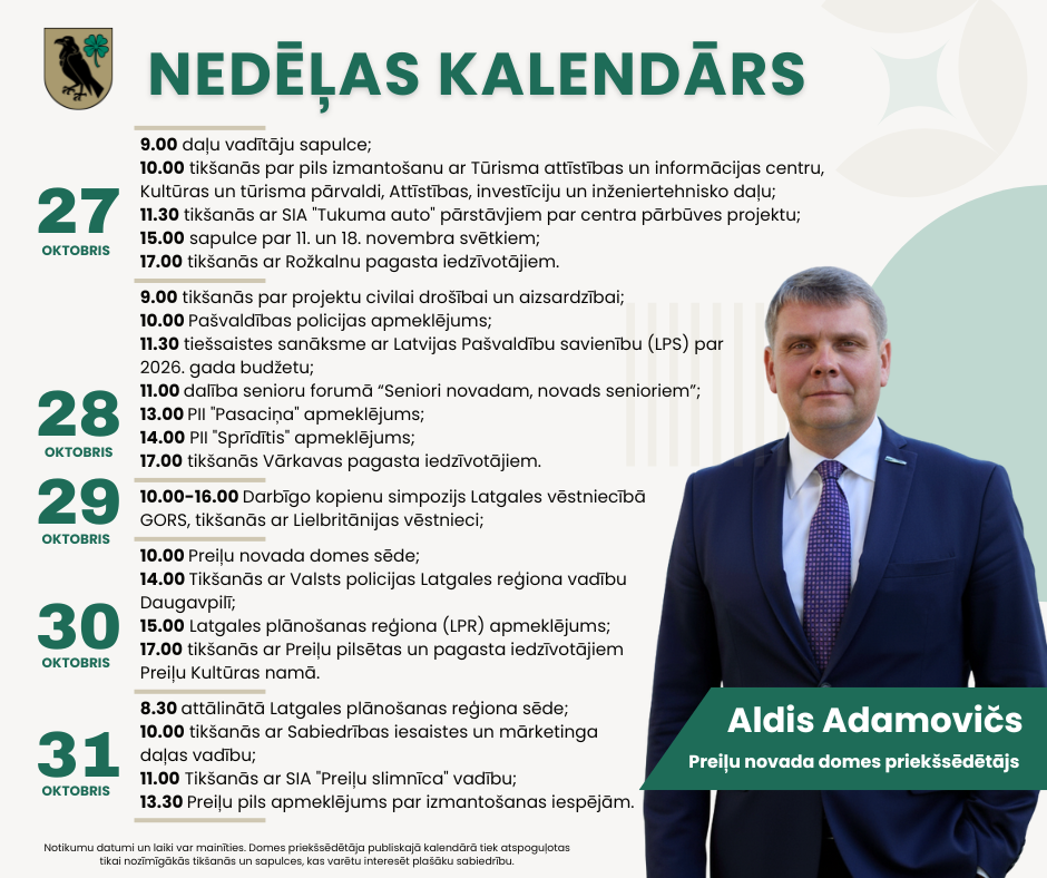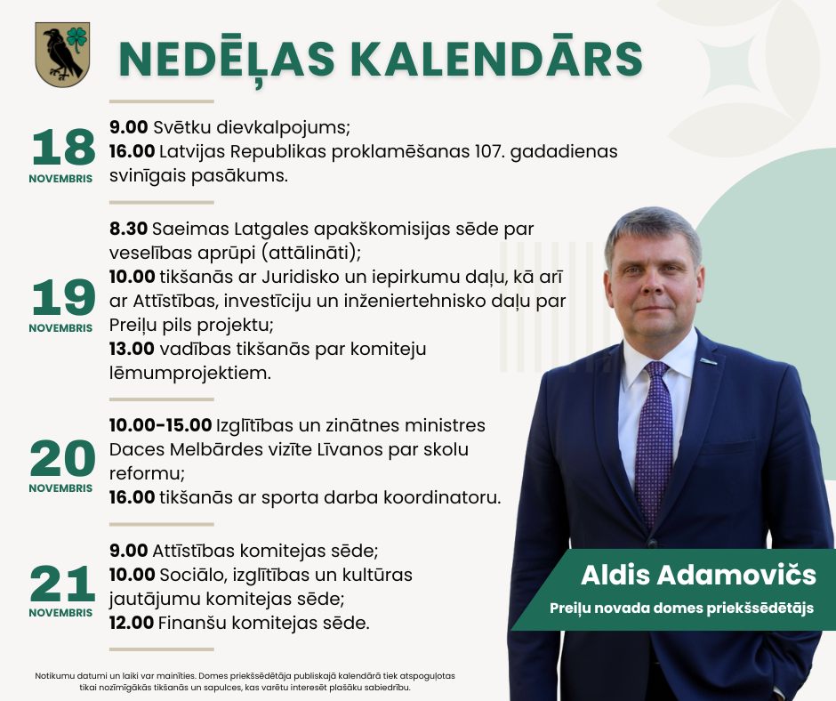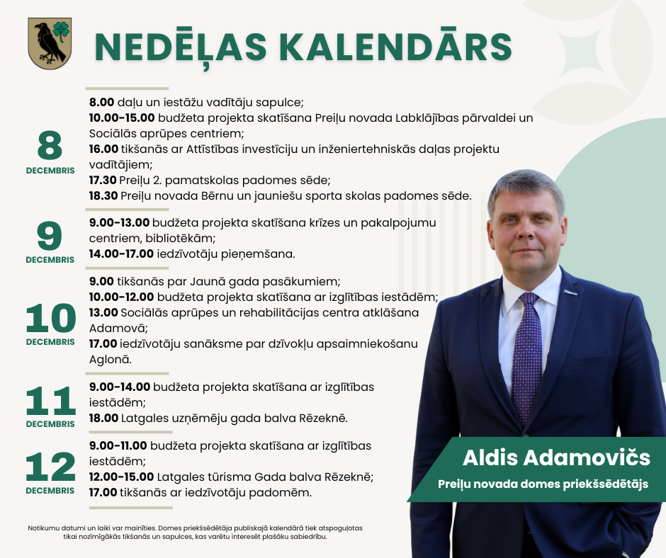Iedzīvotājus pieņem Preiļu novada pašvaldībā katru otrdienu no 14.00. līdz 17.00.