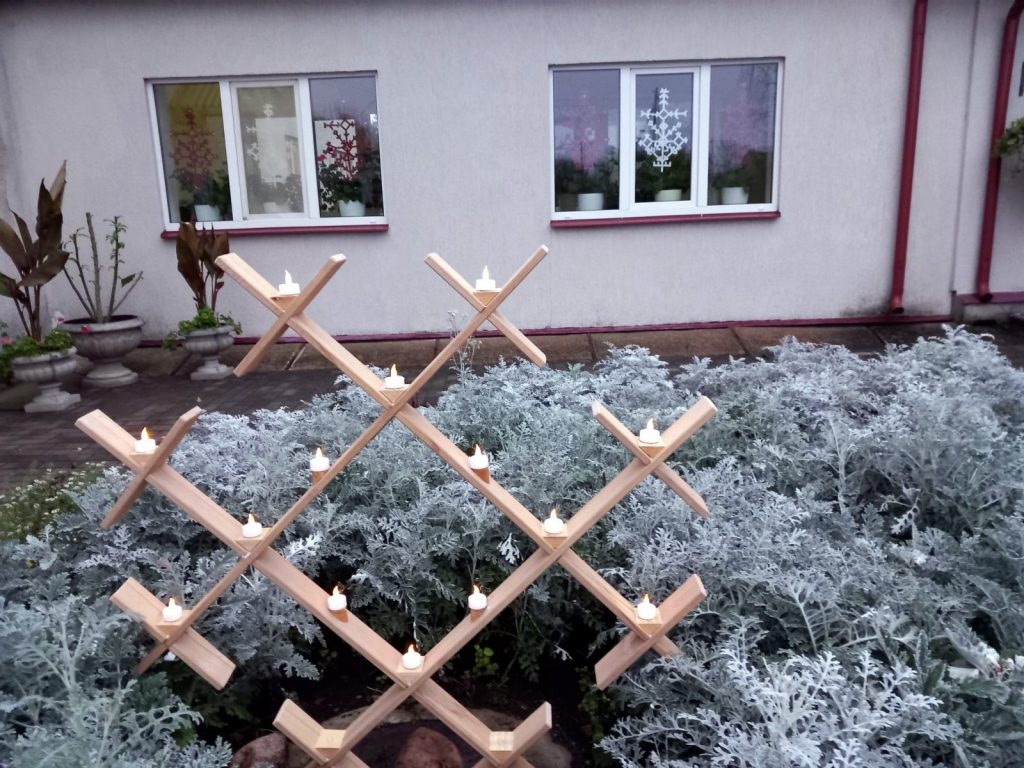 Mūsu SAC “Aglona” iemītnieki Latvijas dzimšanas dienas priekšvakarā gatavoja Austras kokus logos, kuplas asteres sarkanbaltsarkanās krāsas un svečturīšus par godu mūsu Latvijai. Klienti darbinieku pavadībā izrotāja SAC telpas, stāstot stāstus un dziedot dziesmas par Latviju. Īpaši klientiem patīk Mihaila Smirnova izgatavotais koka āra svečturis.