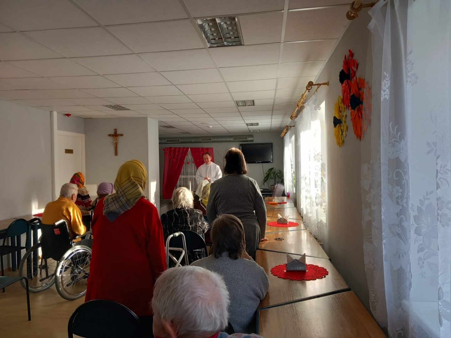 14. februāris ir mīlestības svētki, tā ir nozīmīga diena arī mūsu sociālā aprūpes centrā, jo katrs no mums ir mīlējis un mīl joprojām. Šī diena ir svētīga un mīlestības pilna. Rīts sākās ar to, ka ar vizīti mūs pagodināja Aglonas bazilikas priesteris Juris Zarānās, novadot Svēto Misi un aprunājoties ar katru SAC iemītnieku, kurš to vēlējās.