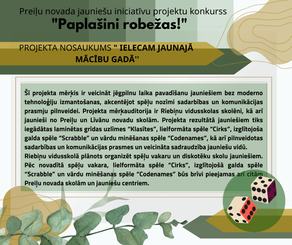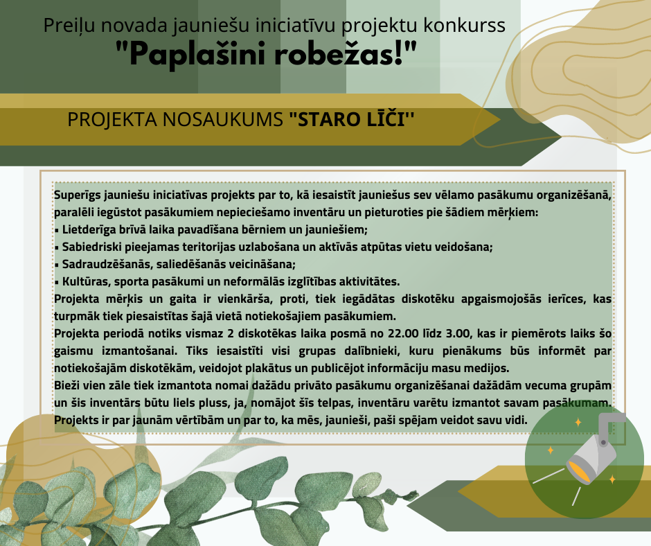 Lai veicinātu jauniešu līdzdalību sev svarīgu jautājumu risināšanā, Preiļu novada pašvaldība reizi gadā izsludina Preiļu novada jauniešu iniciatīvu projektu konkursu “Paplašini robežas!”.