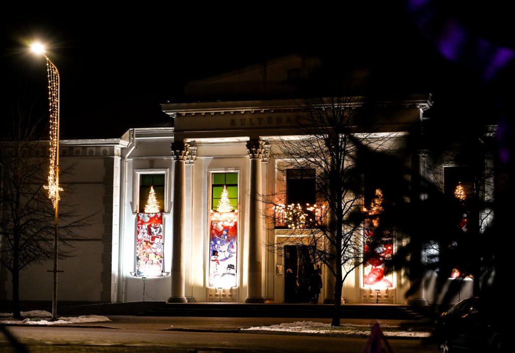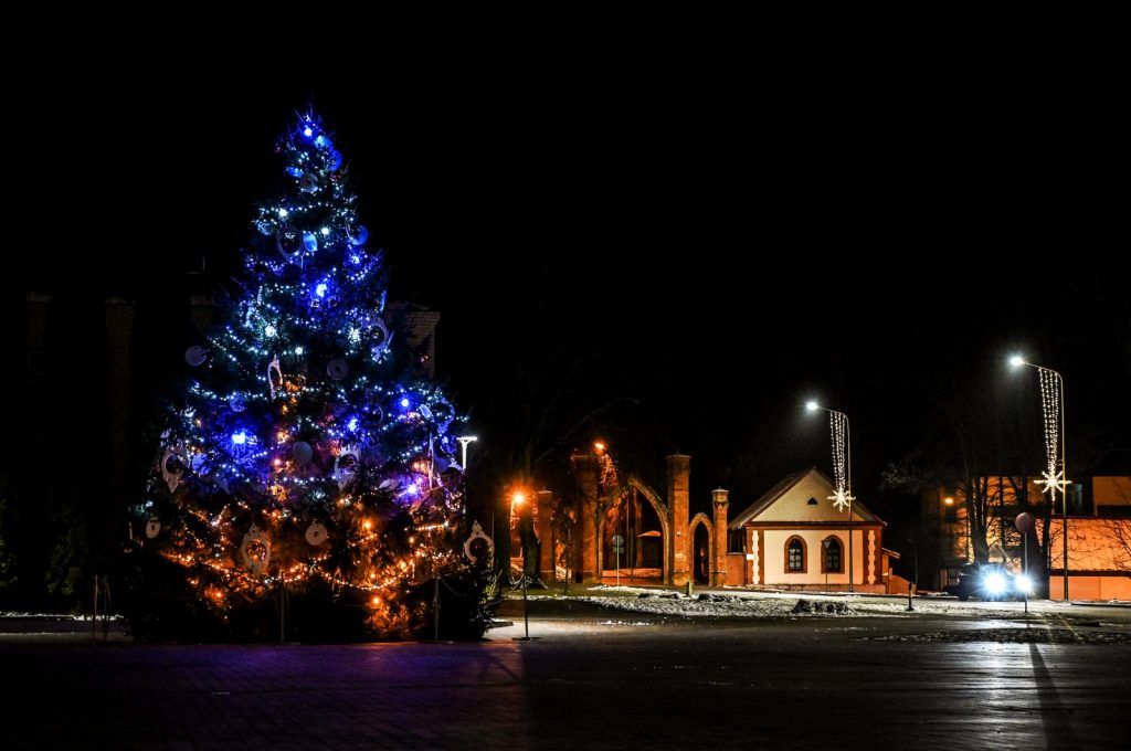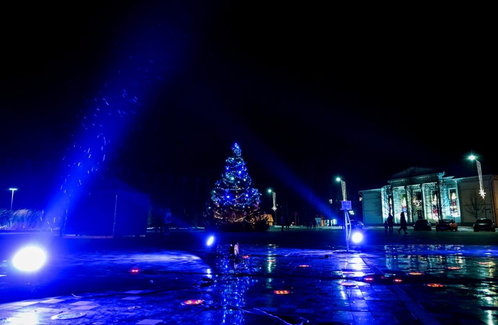 Svētku egle Preiļos gaismu rotā