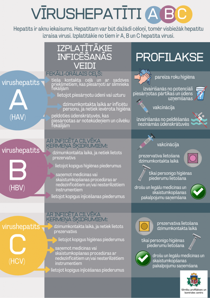 Uzzināt vairāk par vīrushepatītiem: www.spkc.gov.lv/lv/citas-infekcijas-slimibas