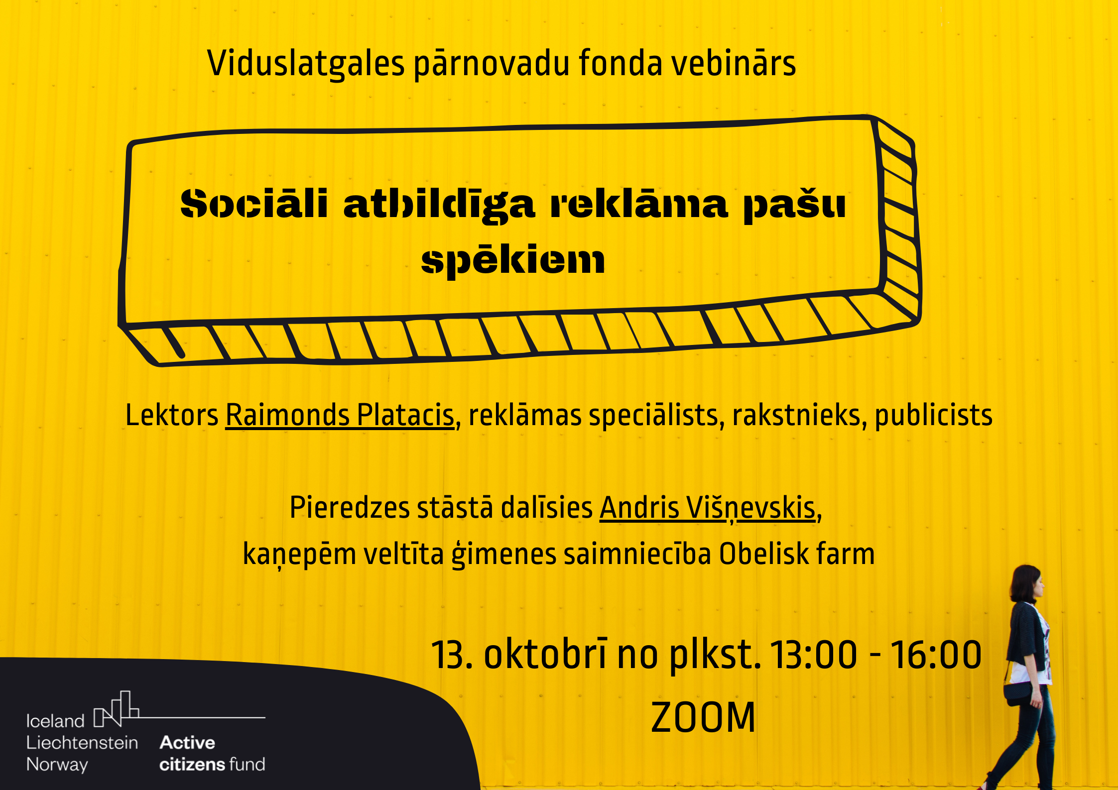 Aktivitāte tiek īstenota korporatīvās sociālās atbildības semināru cikla uzņēmējiem ietvaros projektā “Labdarības aplis”. Projektu un vebināru finansē Norvēģija, Islande un Lihtenšteina caur Aktīvo iedzīvotāju fonda granta programmu.