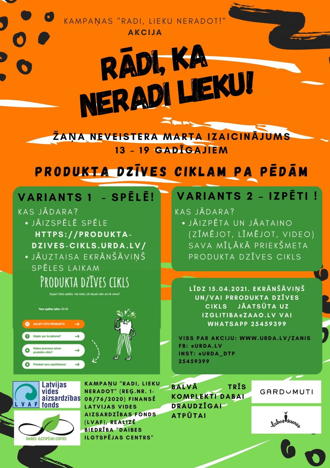 Visu par akciju un kampaņu var uzzināt dabas un tehnoloģiju parka „URDA” mājas lapā: www.urda.lv/lv/zanis