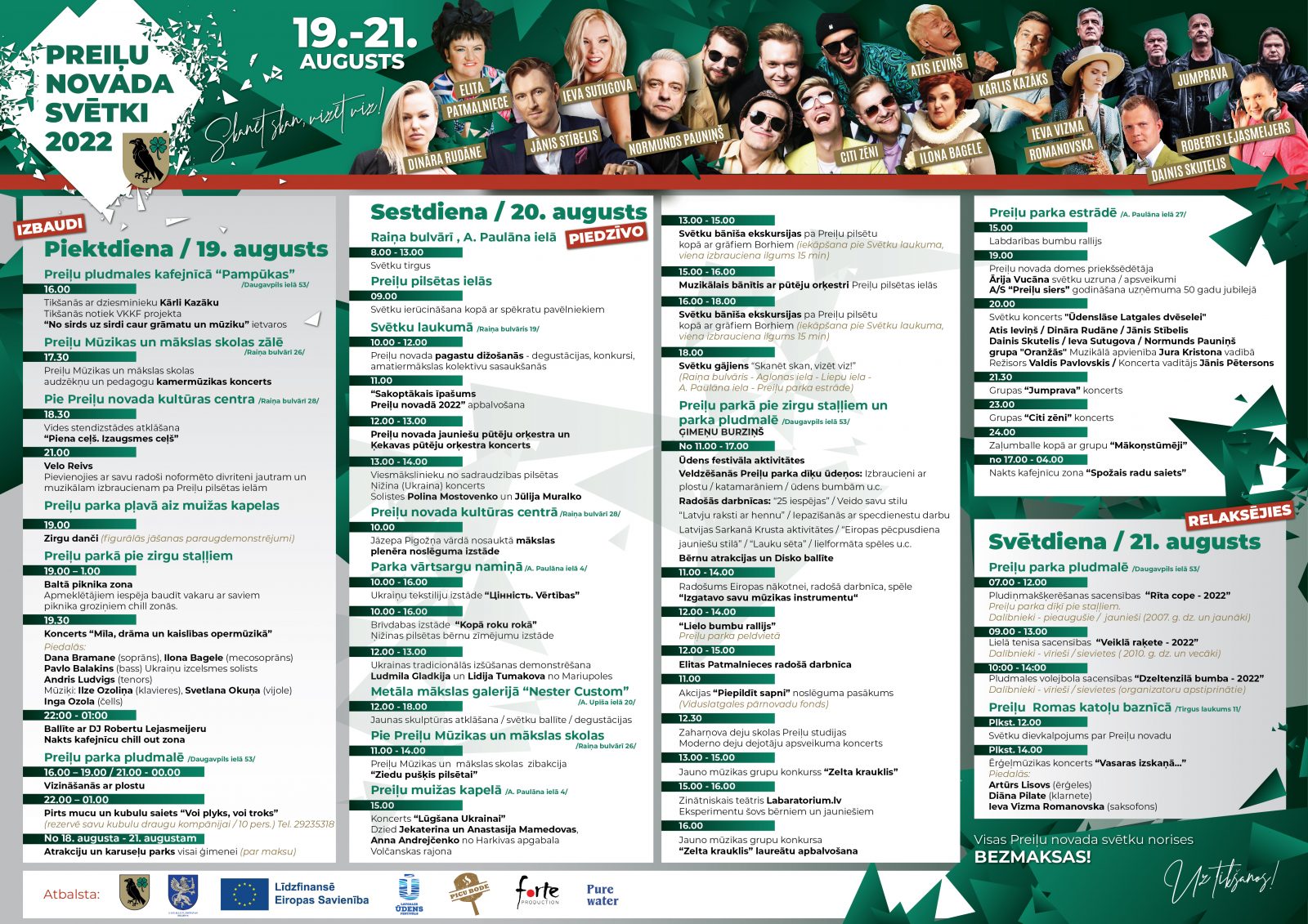 21. augustā aktīvās atpūtas cienītāji tiks gaidīti Preiļu parka pludmalē, bet mierpilns svētku noslēgums būs Preiļu Romas katoļu baznīcā: