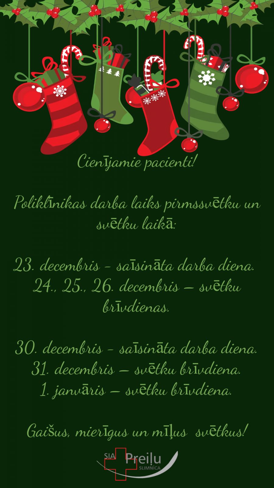 Poliklīnikas darbalaiks pirmssvētku un svētku laikā: