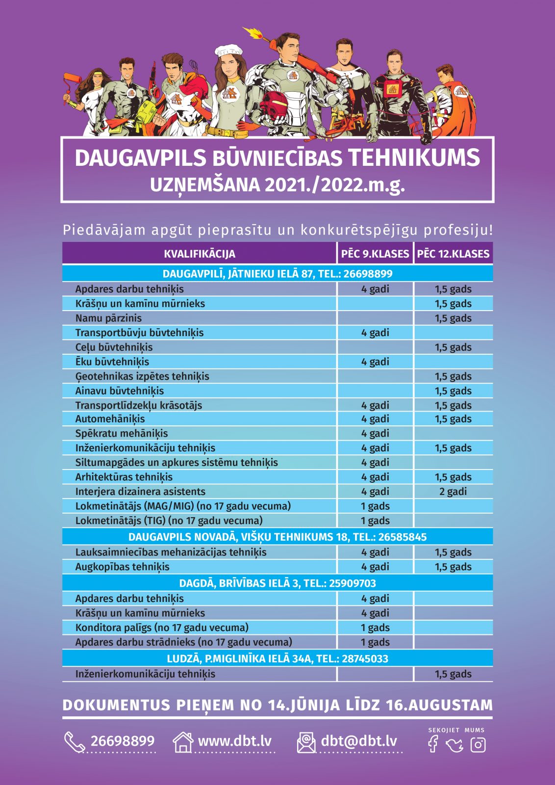 Seko aktualitātēm mūsu sociālajos tīklos (facebook , instagram, twitter) vai mājaslapā www.dbt.lv