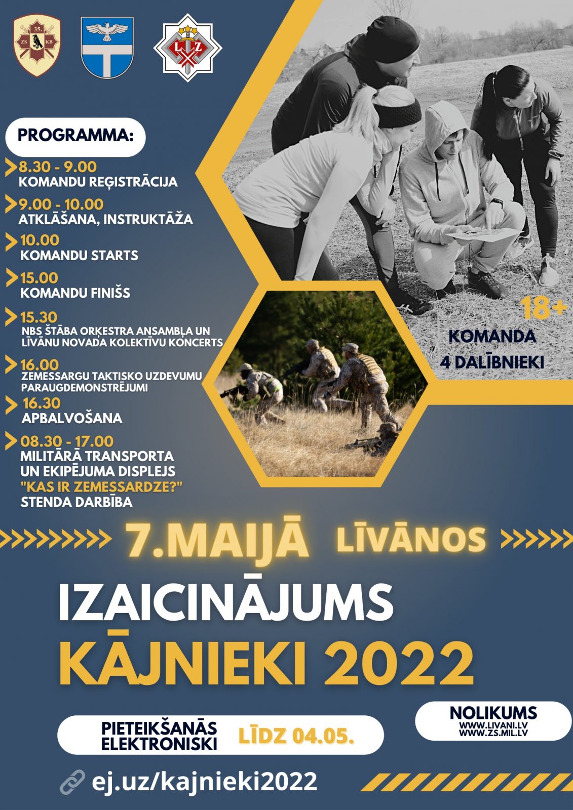 Līdz 4. maijam Zemessardzes 35. kājnieku bataljona karavīri un zemessargi aicina iedzīvotājus pieteikties Zemessardzes izaicinājumam – sacensībām “Kājnieki 2022”, kas notiks 7. maijā Līvānu pilsētā.