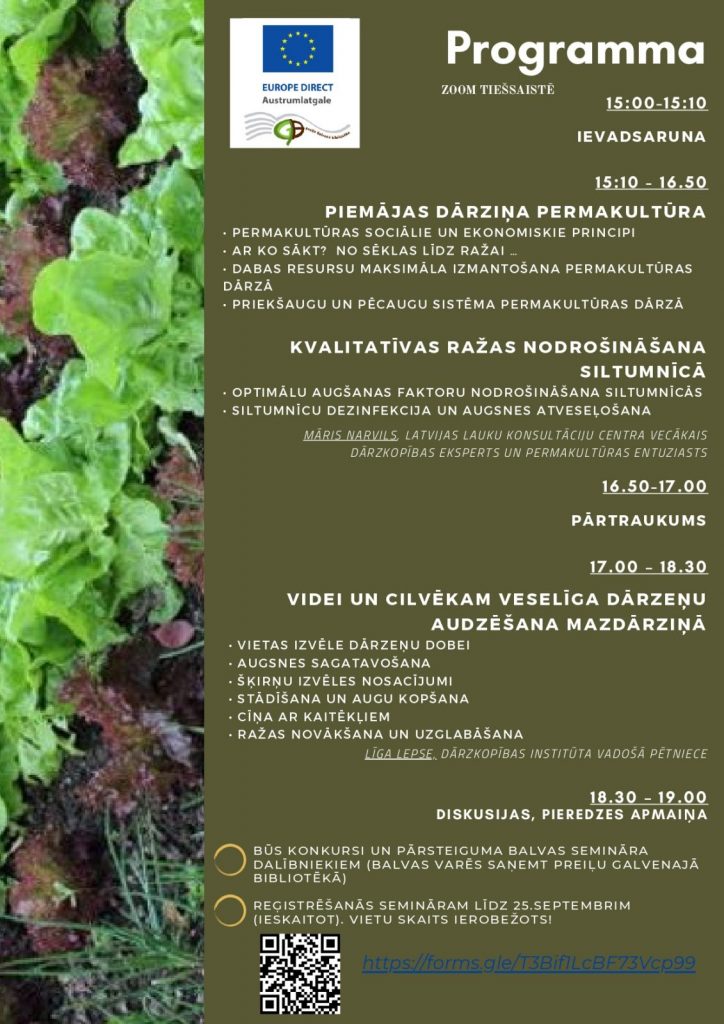 29. septembrī no plkst. 15.00 līdz 19.00 Europe Direct informācijas centrs Austrumlatgalē – Preiļi organizē informatīvu tiešsaistes semināru