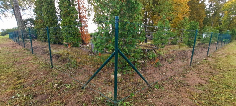 Projekta ietvaros iniciatīvas grupa demontēja daļu vecā žoga, sakopa koku vainagus, izzāģēja krūmus un bīstamos kokus, kā arī pārkrāsoja gan koka, gan metāla vārtus un kapličas durvis.