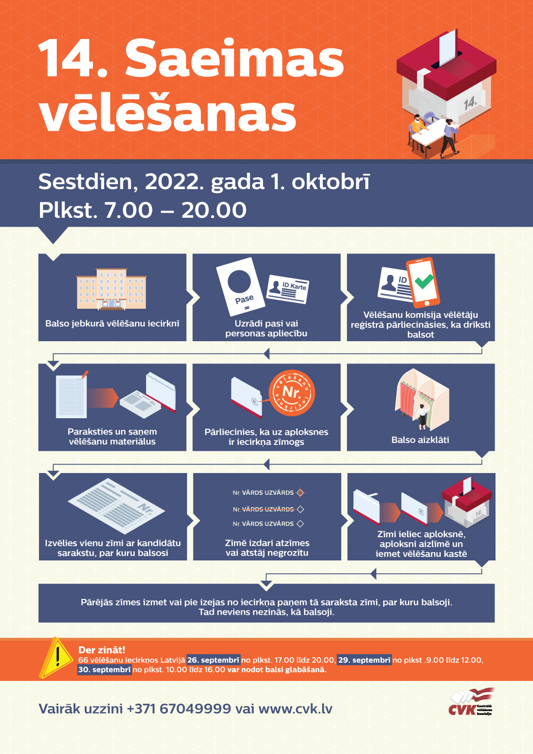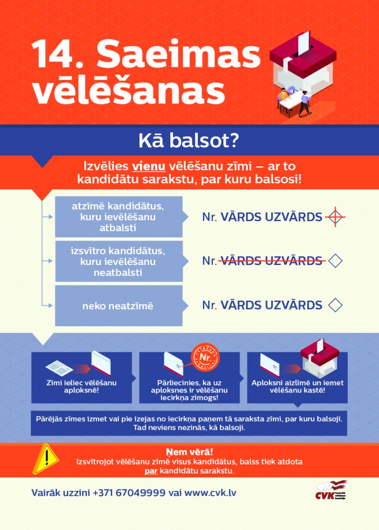 Plašāka informācija par 14. Saeimas vēlēšanām pieejama Centrālās vēlēšanu komisijas mājas lapā www.cvk.lv.