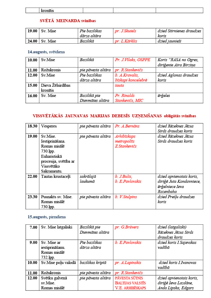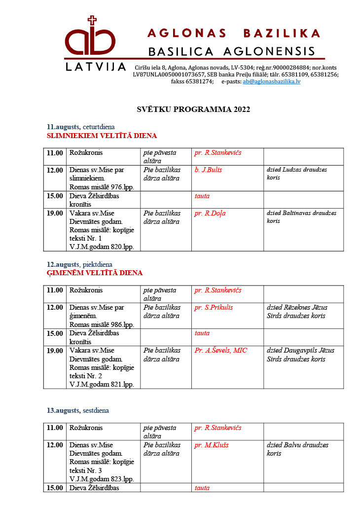 No 11. līdz 15. augustam Preiļu novada Aglonā norisināsies Vissvētākās Jaunavas Marijas debesīs uzņemšanas svētki.