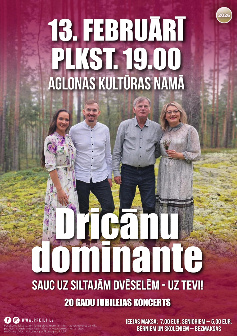 13. februārī plkst. 19.00 aicinām uz Dricānu dominantes 20 gadu jubilejas koncertu!