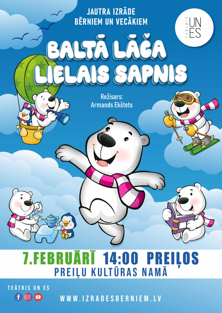 Pēc izrādes mazajiem skatītājiem būs iespēja satikt un nofotografēties ar Balto Lāci un Pingvīnu.