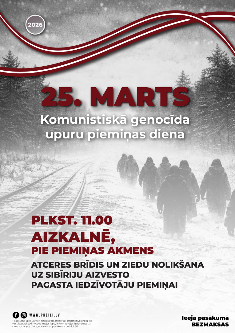 - 25. martā plkst. 11.00 pie Aizkalnes piemiņas akmens norisināsies atceres brīdis un ziedu nolikšana uz Sibīriju aizvesto pagasta iedzīvotāju piemiņai;