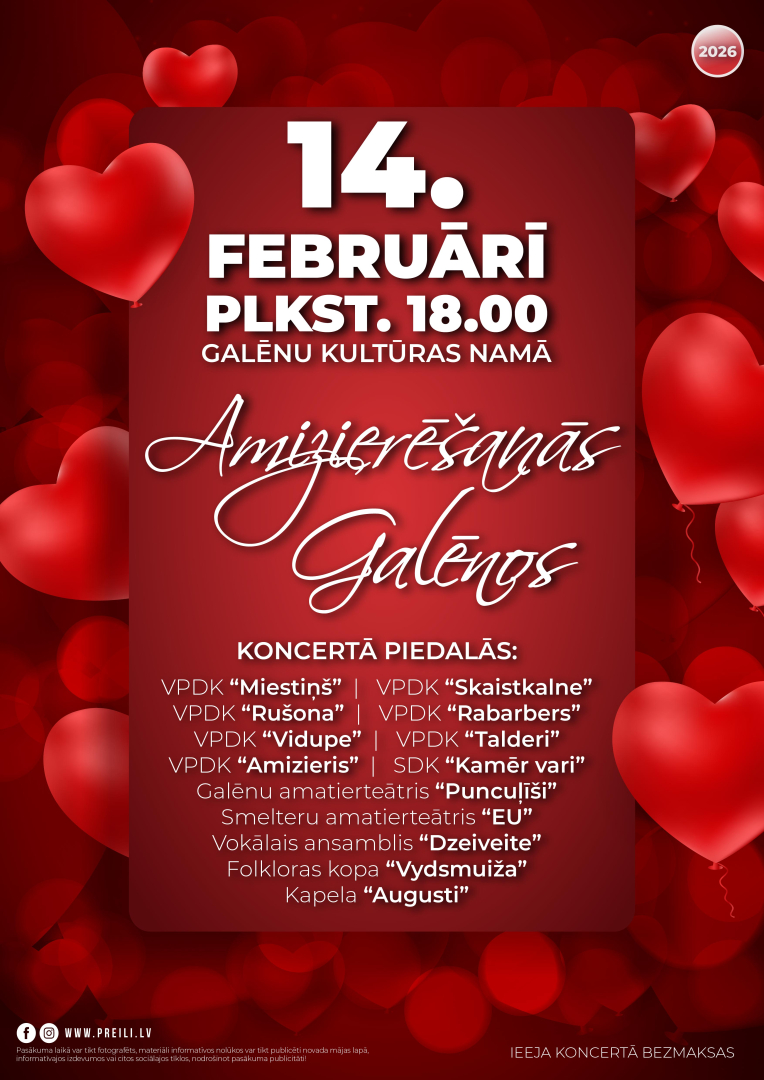 14. februārī plkst. 18.00 Galēnu Kultūras namā notiks koncerts "Amizierēšanās Galēnos".